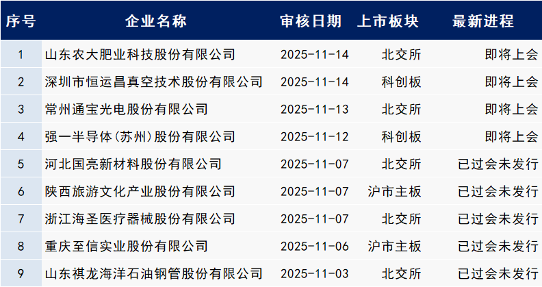 本期(11.3~11.7)有5家上会企业,最新进程均为已过会未发行。