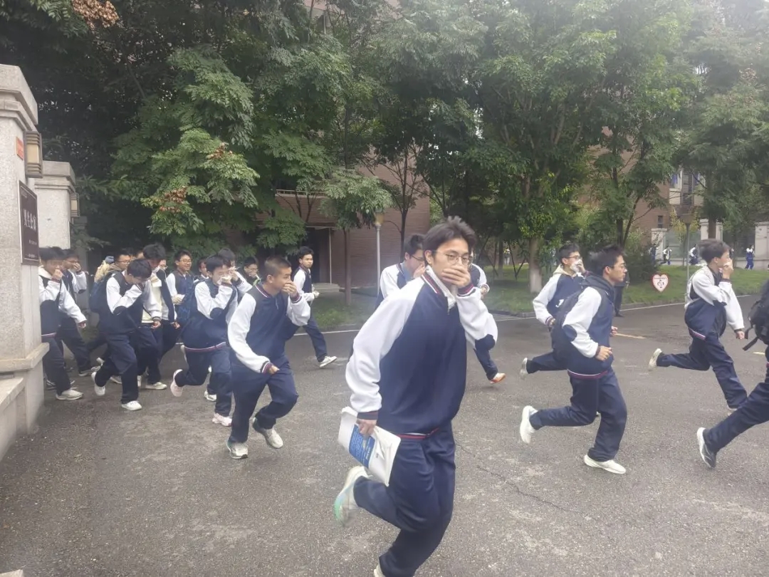 演练中,消防警报骤然拉响,公寓楼内的1729名住校生迅速进入应急状态、同学们快速用湿毛巾捂住口鼻,弯腰低姿贴墙,有条不紊地向安全区域撤离。整个撤离过程仅耗时2分钟。随后,各班迅速完成人数清点,现场秩序井然、行动高效,充分展现出内江六中住校生扎实的应急避险技能。